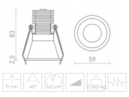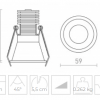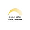 Vgradna LED luč, ki jo je mogoče zatemniti in ima tudi možnost spreminjanja barvne topline na zahtevo – tako imenovana DIMM TO WARM. Barvo lahko prilagodite med 3000K in 1800K. Za vgradnjo je potreben mavčni strop. Primerno za mokre prostore, kot so kopalnice. Zatemnitev TRIAC. Ima vgrajen LED in vključuje transformator.