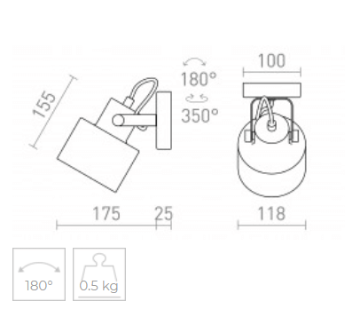 Cilindrični kovinski reflektor za svetlobne vire E27 je namenjen uporabi nad pisalnimi mizami ipd. saj z njegovo funkcijo nagiba do 180° lahko svetlobo usmerite v želeno smer.
