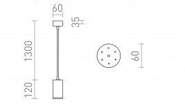 Minimalističen cilindrični reflektor na okrogli osnovi za GU10 svetlobne vire. Vzmeti pritrjene na grlo omogočajo uporabo svetlobnih virov različnih dolžin.